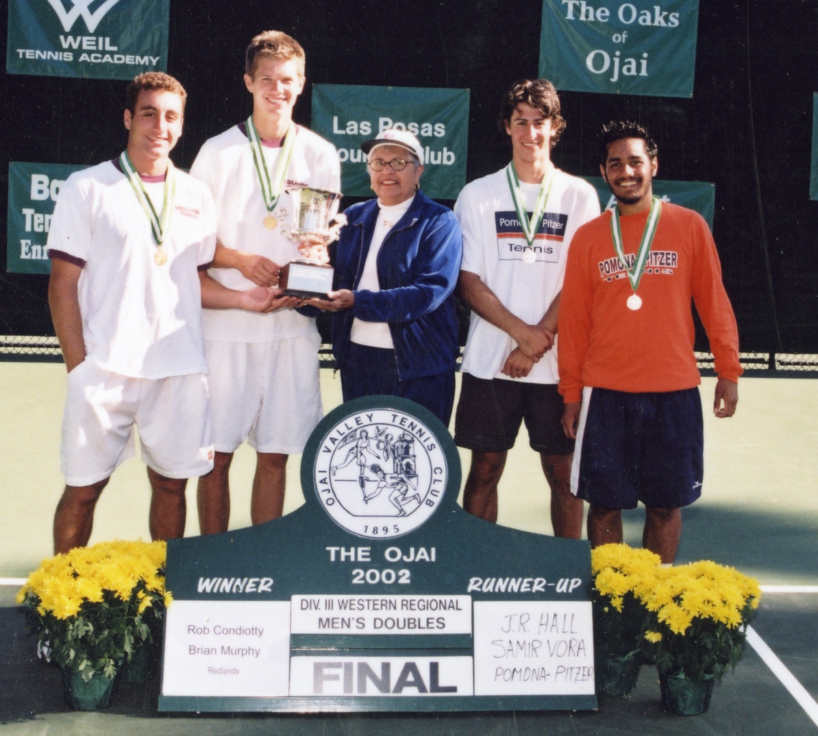 Men’s Division III West Regionals doubles: Rob Condiotty-Brian Murphy (Redlands) def. J.R. Hall-Samir Vora (Pomona-Pitzer)