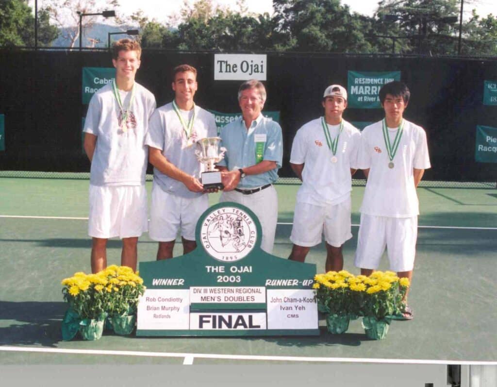 Men’s Division III West Regionals doubles: Rob Condiotty-Brian Murphy (Redlands) def. John Cham-a-koon-Ivan Yeh (Claremont-Mudd-Scripps)