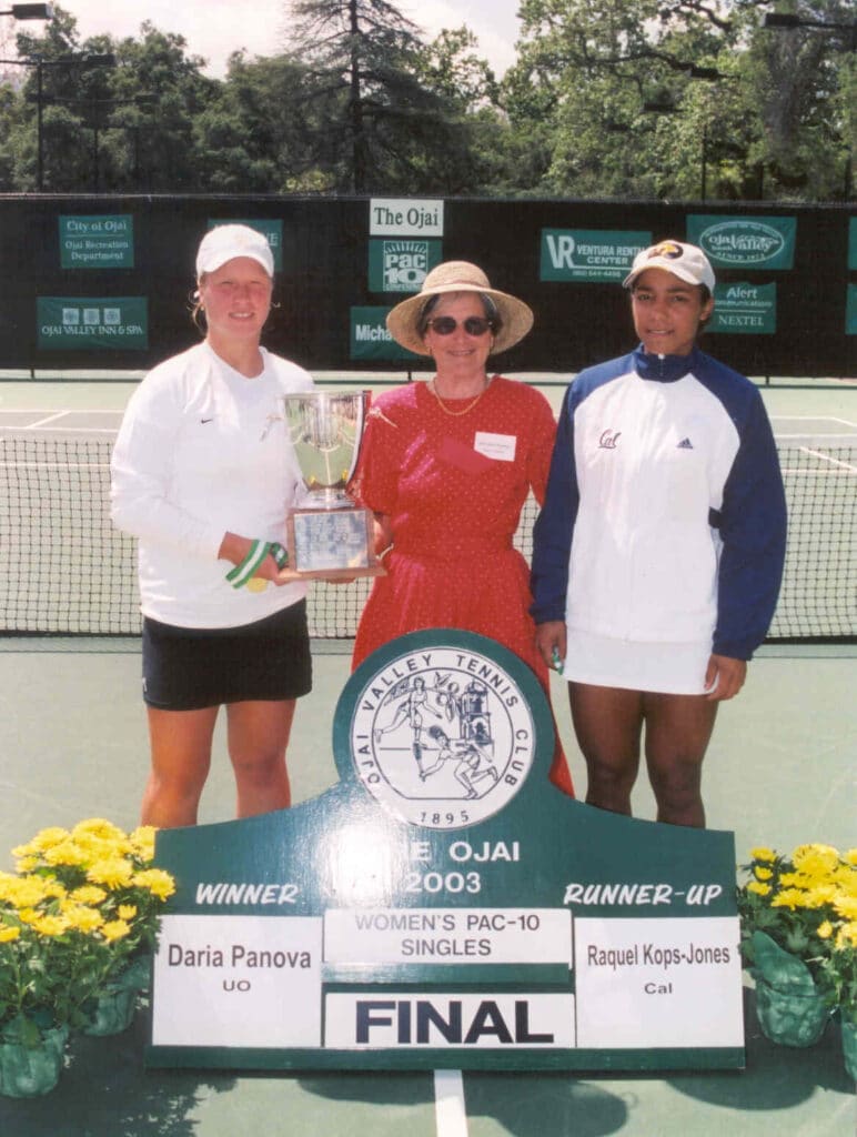 Women’s Pac-10 singles: Daria Panova (Oregon) def. Raquel Kops-Jones (Cal)