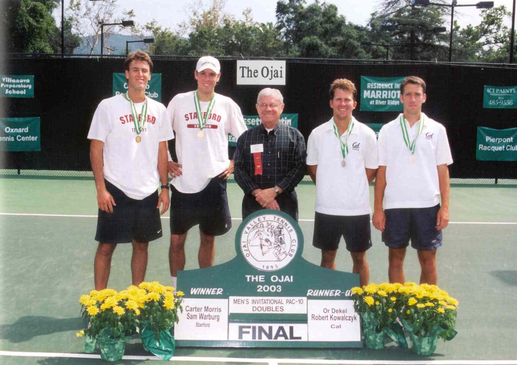 Men’s Pac-10 Invitational College doubles: Carter Morris-Sam Warburg (Stanford) def. Or Dekel-Robert Kowalczyk (Cal)