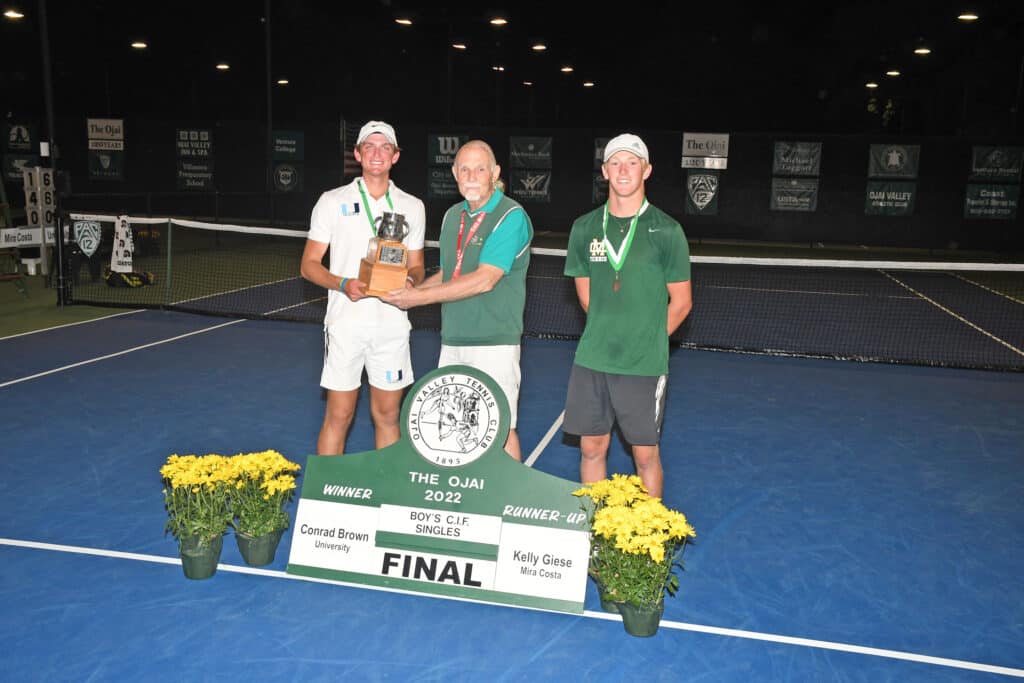 CIF Boys’ 18 Singles: Conrad Brown (University HS-Irvine) d. Kelly Giese (Mira Costa HS), 6-1, 6-4