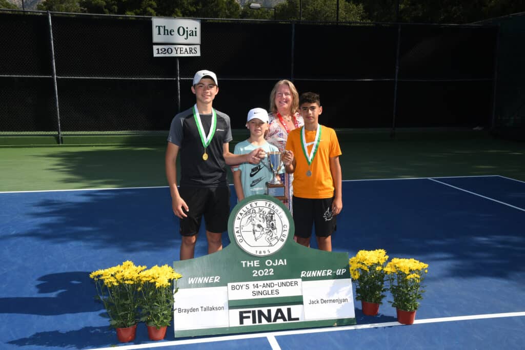 Boys’ 14s Singles: (1) Brayden Tallakson (Irvine, CA) d. (2) Jack Dermenjyan (Burbank, CA), 6-4, 6-3