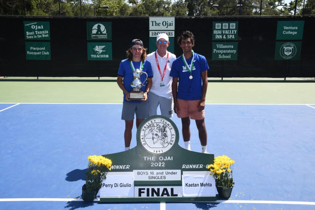 Boys’ 16s Singles: (1) Perry Di Giulio (Newport Beach, CA) d. (2) Kaetan Mehta (Edmonton, Alberta, Canada), 6-4, 6-4