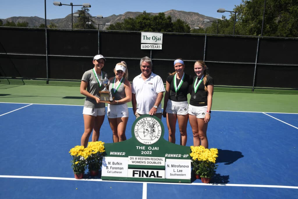 Women’s Division III West Doubles: (3) Mari Bufkin/Brennan Foreman (Cal Lutheran) d. (2) Nina Mitrofanova/Lydia Lee (Southwestern University, TX), 6-2, 6-2