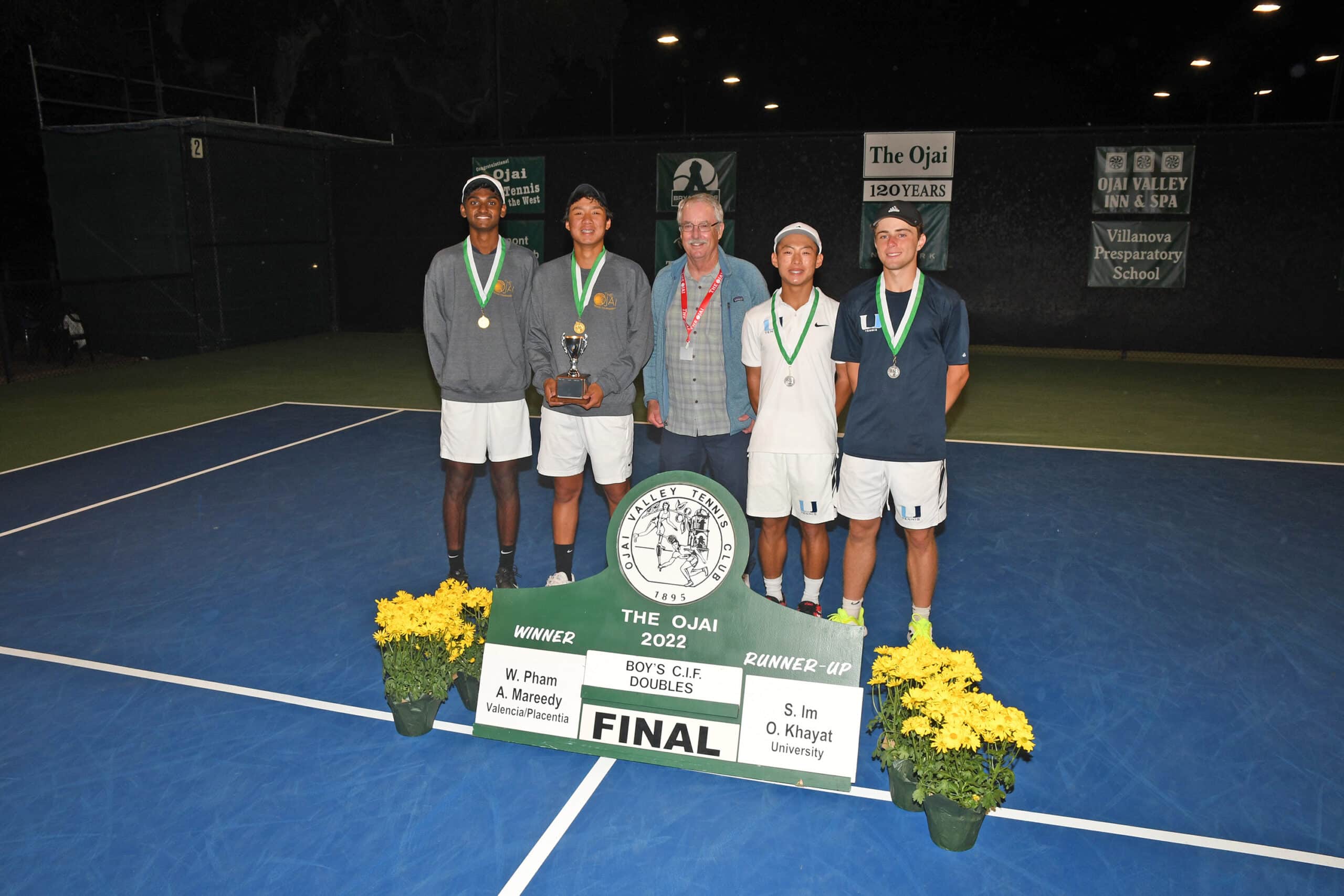 CIF Boys’ 18 Doubles: Advik Mareedu/Warren Pham (Valencia HS-Placentia) d. SangHyuk Im/Omar Khayat (University HS-Irvine), 6-1, 6-3