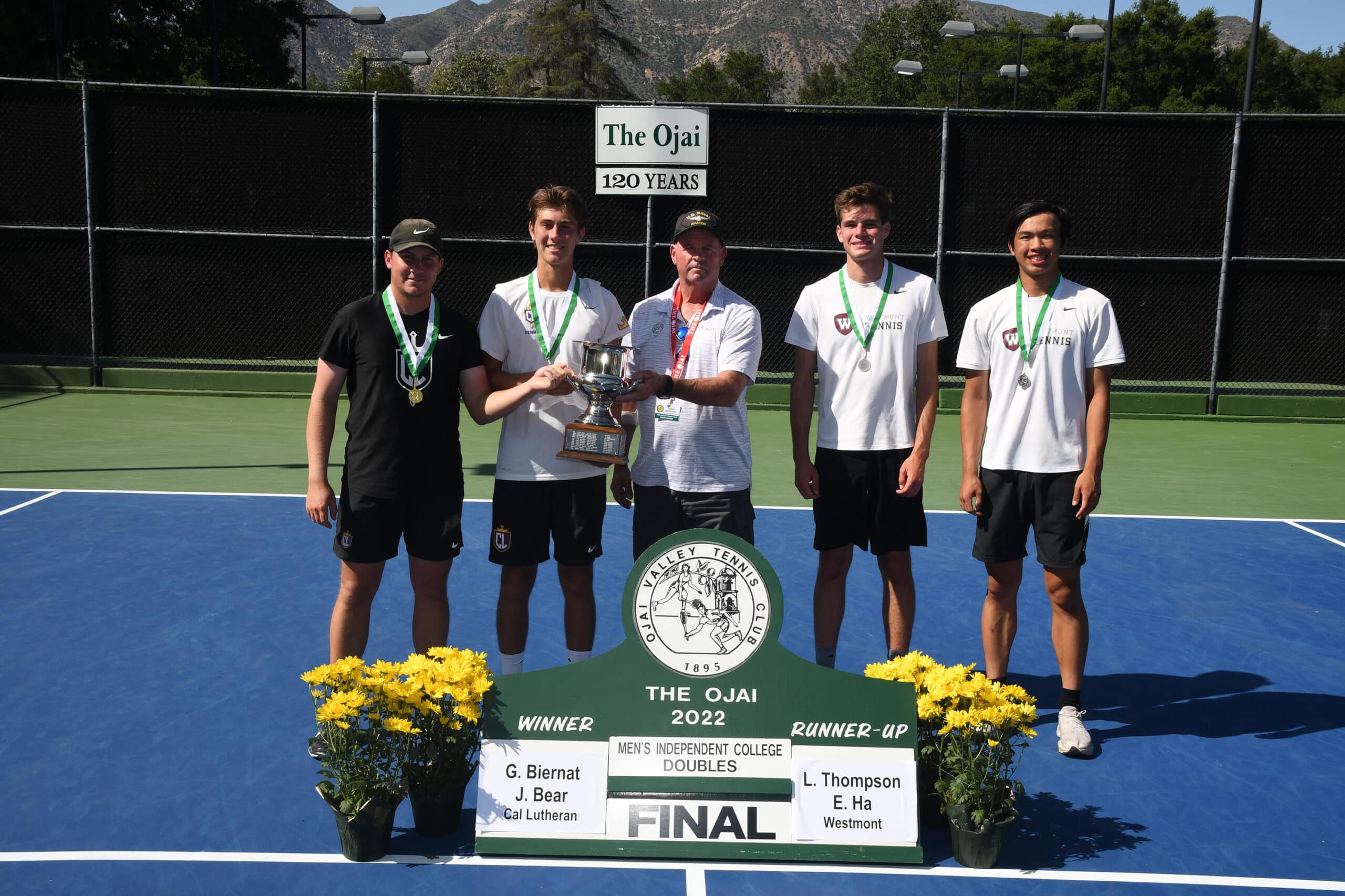 Men’s Independent College Doubles: Griffin Biernat/Jacob Bear (Cal Lutheran) d. (2) Logan Thompson/Ethan Ha (Westmont), 6-4, 6-4