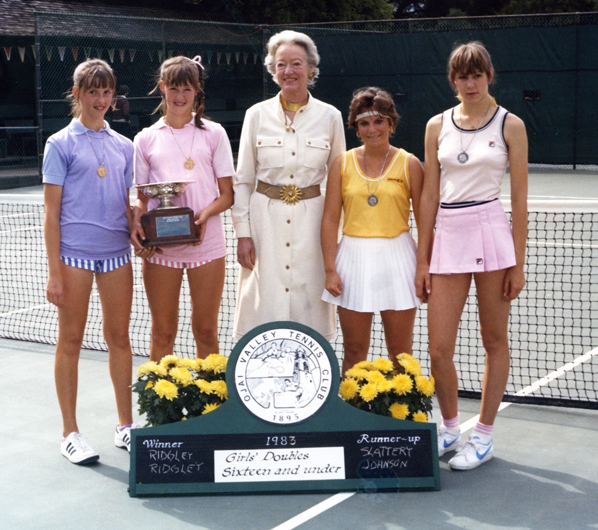 Girls’ 16s doubles: Pam Ridgley-Debby Ridgley def. J. Slattery-T. Johnson