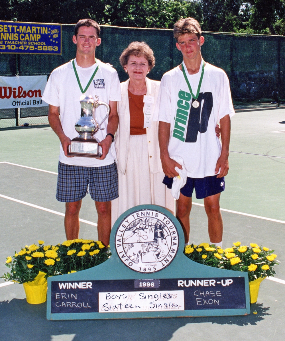 Boys’ 16s singles: 1996-Erin Carroll (Ventura) def. Chase Exon (Irvine)