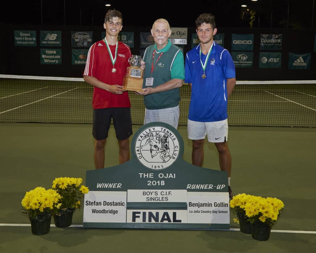 CIF Boys’ Singles: Stefan Dostanic (Woodbridge) d. Benjamin Gollin (La Jolla Country Day), 6-1, 7-6(3)