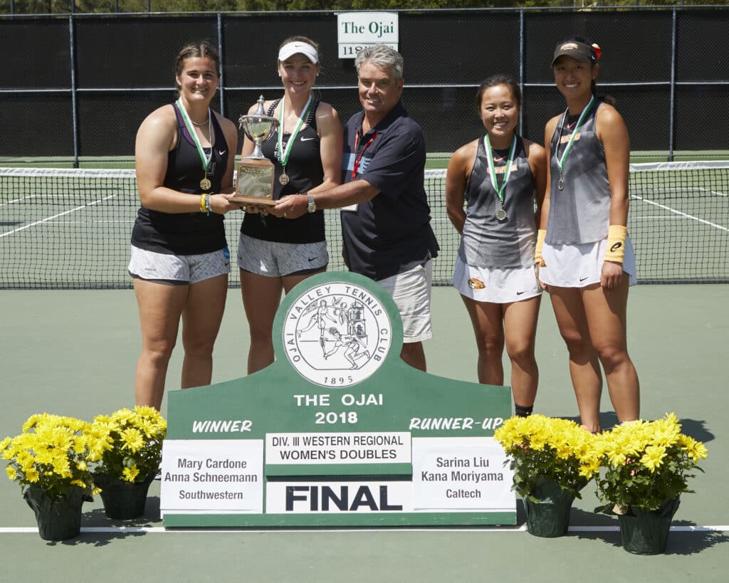 Women’s Division III West Doubles: (1) Mary Cardone/Anna Schneemann (Southwestern) d. (2) Sanna Liu/Kana Moriyama (Cal Tech), 6-2, 6-2