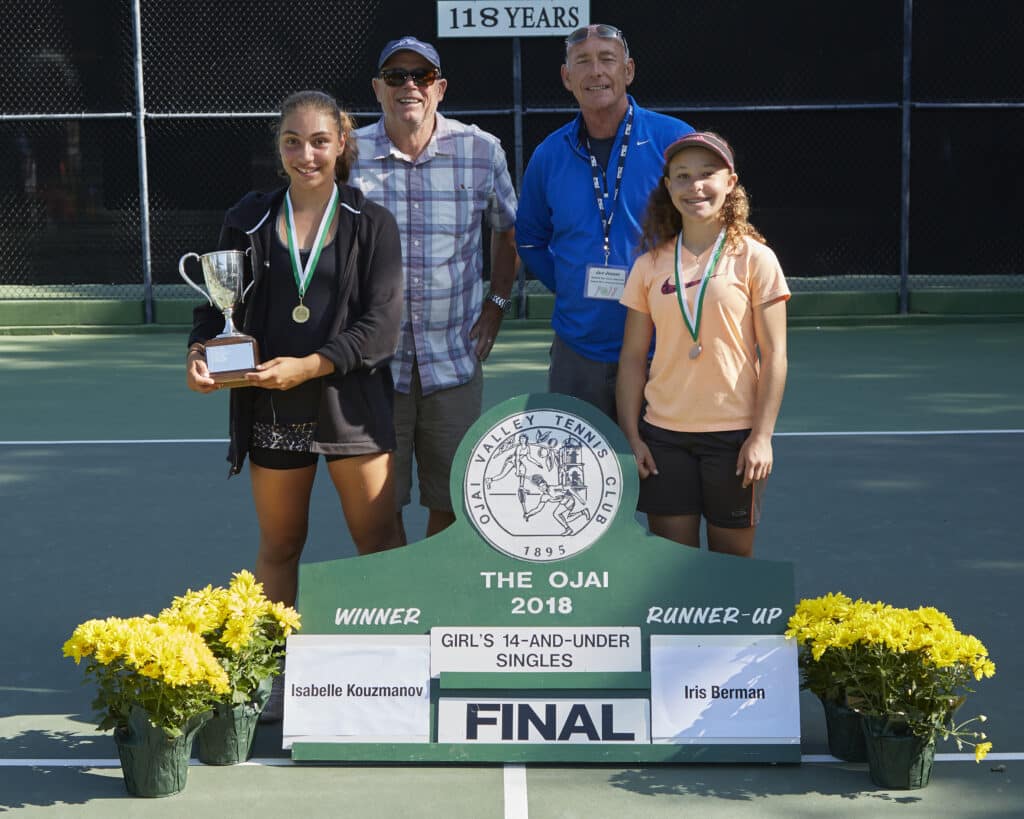 Girls’ 14s Singles: (1) Isabelle Kouzmanov d. (2) Iris Berman (Los Angeles), 6-3, 6-2