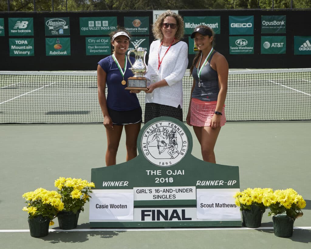 Girls’ 16s Singles: (1) Casie Wooten (Torrance) d. (4) Scout Mathews (Ojai), 6-3, 1-6, 6-3