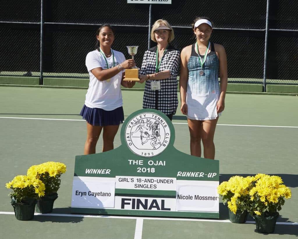 Girls’ 18s Singles: (5) Eryn Cayetano (Corona) d. (1) Nicole Mossmer (La Jolla), 6-3, 4-6, 6-2