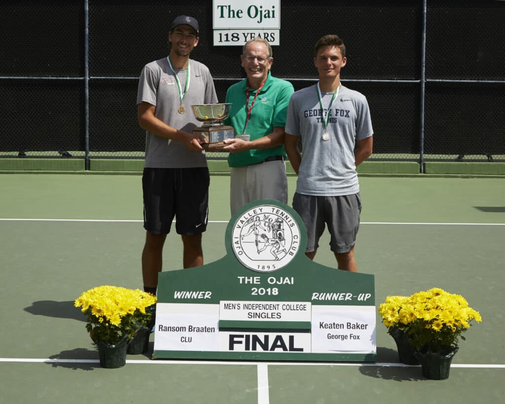 Men’s Independent College Singles: (1) Ransom Braaten (Cal Lutheran) d. (2) Keaten Baker (Occidental), 6-2, 6-2