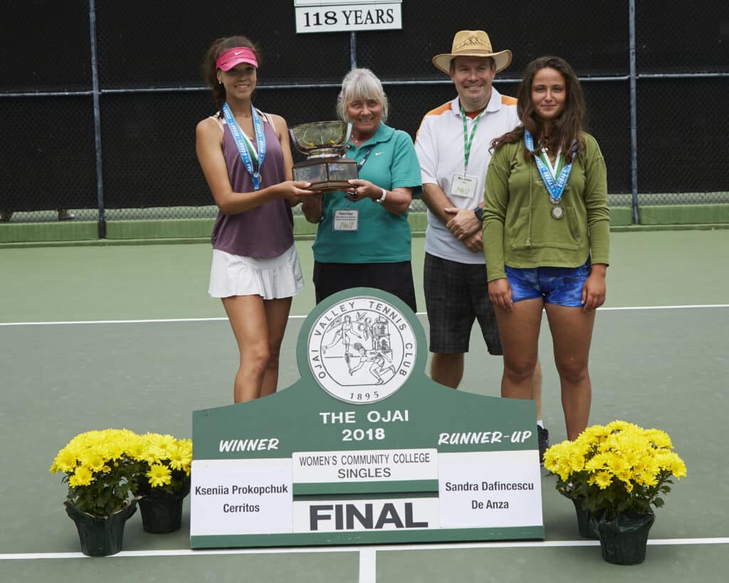Women’s California Community College Athletic Association Singles: (6) Kseniia Prokopchuk (Cerritos) d. (2) Sandra DeFrancescu (De Anza), 6-4, 6-2
