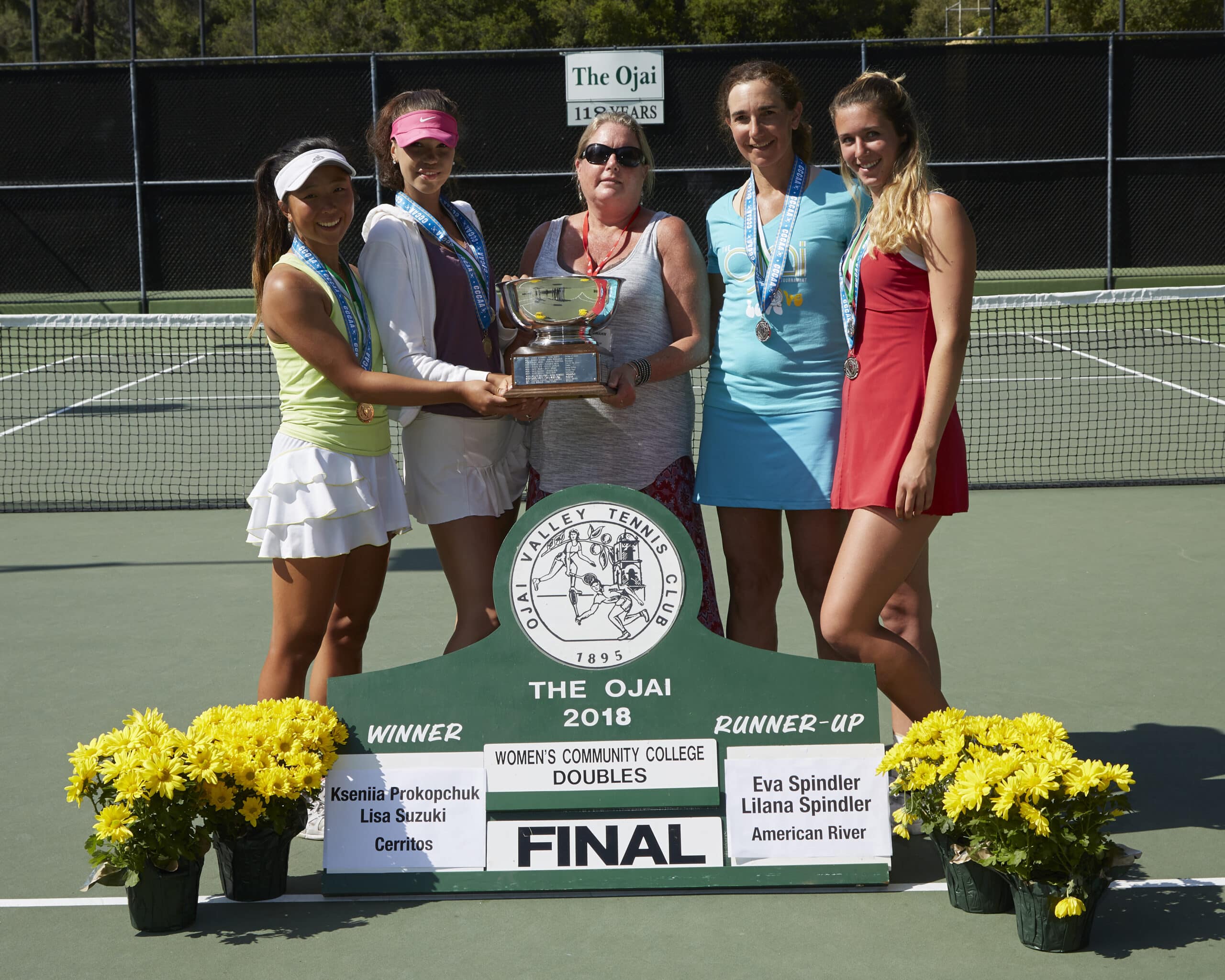 Women’s California Community College Athletic Association Doubles: (1) Kseniia Prokopchuk/Lisa Suzuki (Cerritos) d. (3) Eva Spindler/ Lilana Spindler (American River), 6-3, 6-0