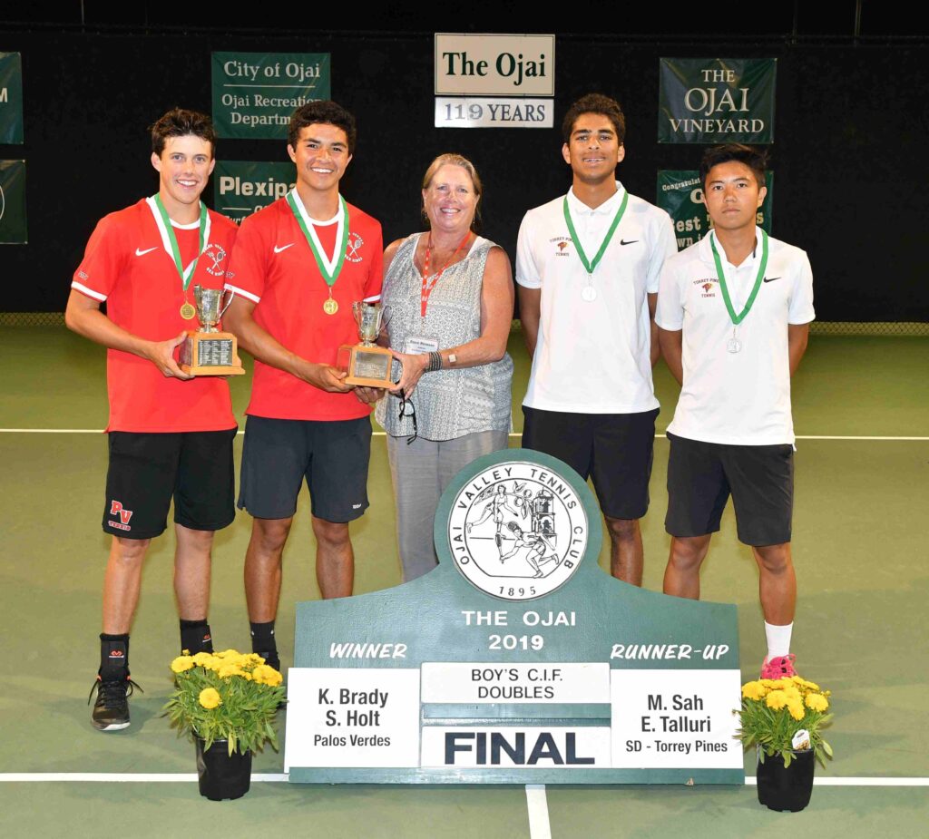 Boys’ CIF 18 Doubles: Kai Brady/Sean Holt (Palos Verdes) d. Matthew Sah/Eshan Talluri (Torrey Pines), 6-1, 6-7 (3-7), 6-2
