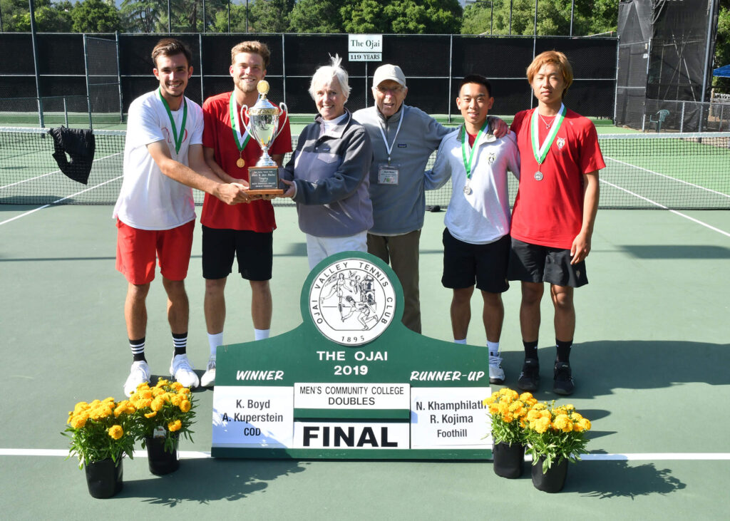 Men’s California Community College Athletic Association Doubles: (1) Kalman Boyd/Alex Kuperstein (College of the Desert) d. (2) Nicholas Khamphilath/Ryo Kojima (Foothill College), 6-0, 6-2