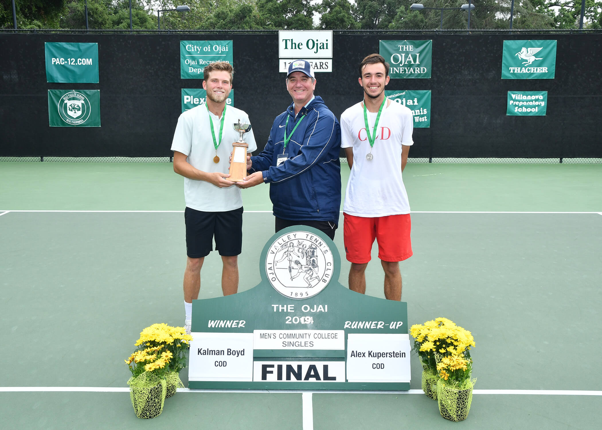 Men’s California Community College Athletic Association Singles: (1) Kalman Boyd (College of the Desert) d. (2) Alex Kuperstein (College of the Desert), 6-4, 6-4