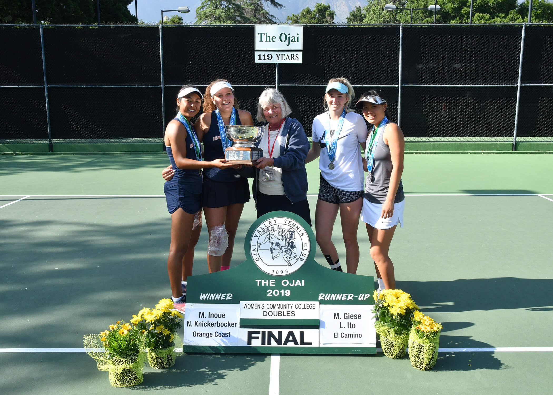 Women’s California Community College Athletic Association Doubles: (1) Miri Inoue/Nicole Knickerbocker (Orange Coast College) d. (2) Madi Giese/ Lina Ito (El Camino College), 7-6 (8-6), 3-6, 10-7