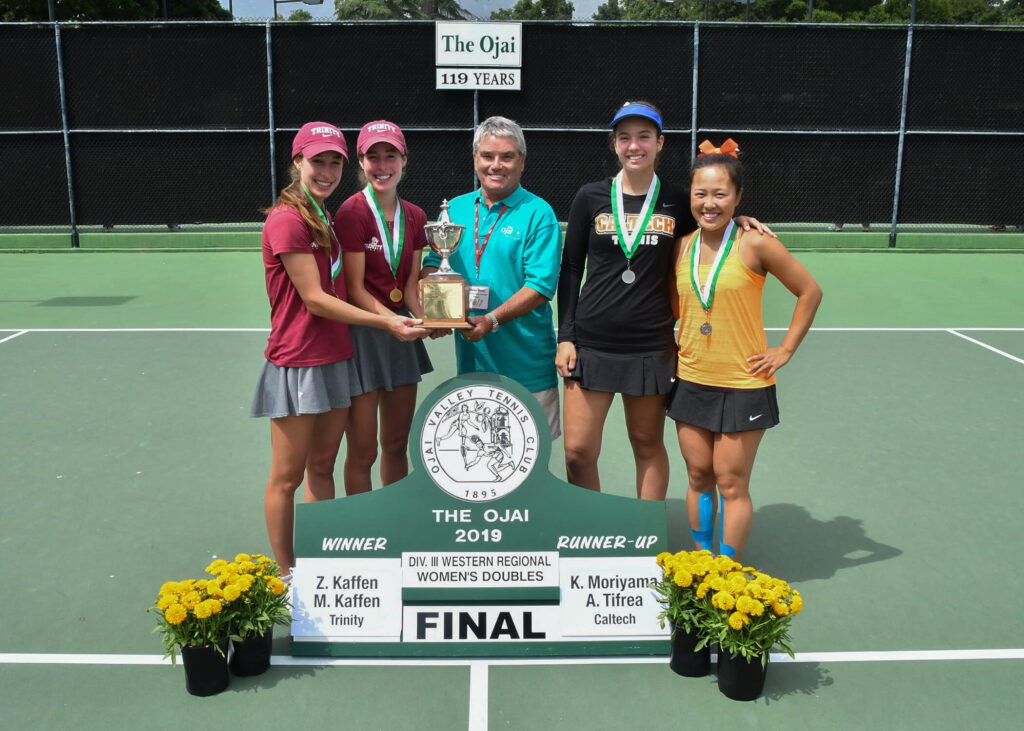 Women’s Division III Invitational Doubles: (1) Zoe Kaffen/Mary Kaffen (Trinity University, TX) d. (3) Kana Moriyama/Anna Tifrea (Cal Tech), 6-2, 6-0