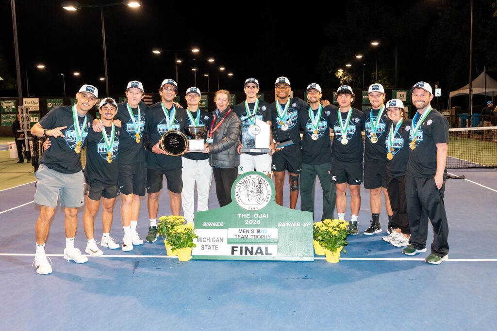 OJAI, Calif. – Neither several weather delays nor Ohio State could stand in the way of Michigan State men’s tennis winning its first Big Ten Tournament title since 1967 after a dramatic, 4-3 victory over Ohio State in the championship match of the Big Ten Tournament on Saturday night at Libbey Park in Ojai, Calif.